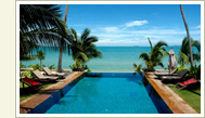 Saboey, a boutique hotel and resort, is located on Big Buddha Beach, Koh Samui. Accommodations include 14 private villas, 6 suites, and 2 courtyard rooms. We have negotiated room prices ranging from approximately $140 to $160 per night, double occupancy. Breakfast and all taxes are included.